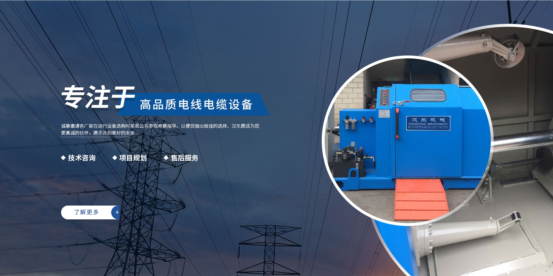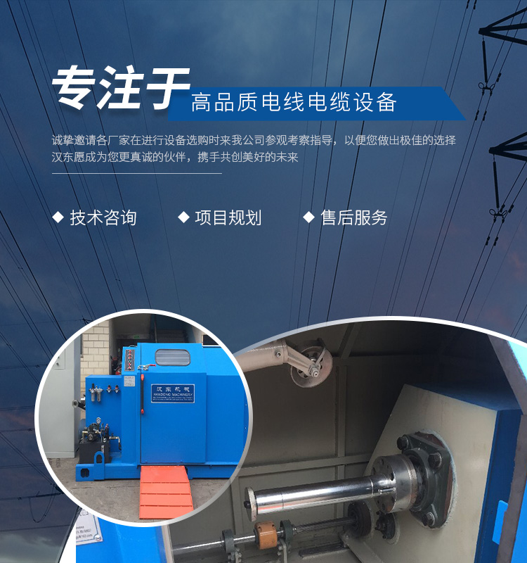 常州漢東機械始創(chuàng)于2006年,是集電線電纜機械設計、開發(fā)、制造、安裝、調試為一體化的高科技企業(yè)。本公司自開業(yè)以來,積極引進日本,歐美等國外電線電纜設備之先進技術,先后成功推出了達到行業(yè)先進水平的電線電纜設備,主要產品有擠出、繞包、束線、成纜等電線電纜固定設備。在提供系統設備的同時,還向客戶提供售前技術咨詢、項目規(guī)劃、以及售后服務。我公司本著“以人為本、科技先導、用戶為上”的宗旨,為客戶提供牢靠的產品與省心的服務。漢東愿成為您更真誠的伙伴,攜手共創(chuàng)美好的未來!